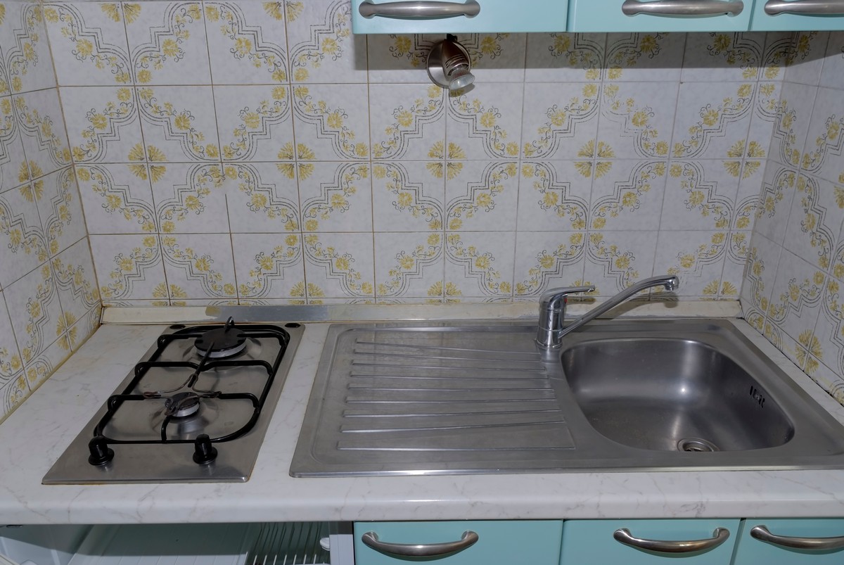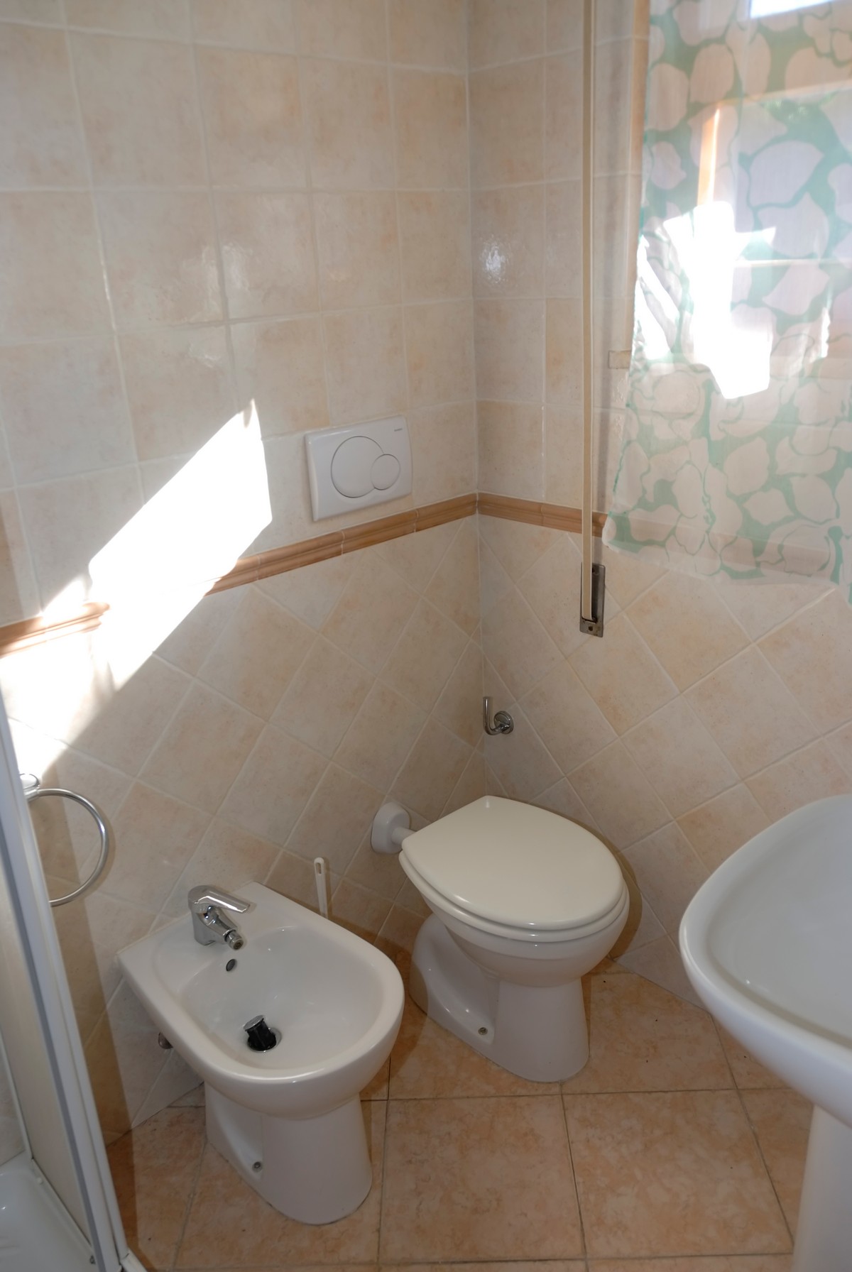 Bilocale al 2° piano SENZA ASCENSORE formato da piccola zona giorno con angolo cottura con 2 piastre elettriche, camera con letto matrimoniale e letto singolo, bagno con doccia e finestra. Aria condizionata nella camera da letto, tv e frigo a colonna.